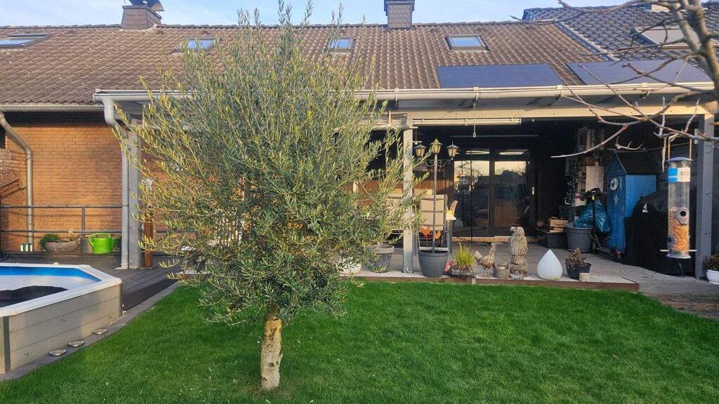 Willkommen im Eigenheim! Dieses massiv errichtete Einfamilienreihenhaus liegt in einer ruhigen Seitenstraße in reiner Wohnlage von Moers-Repelen. Es überzeugt mit der etwas anderen Raumaufteilung als man sie sonst von Reihenhäusern gewohnt ist, sowie einem schön angelegten und großzügigen Grundstück und einem sehr gepflegten Allgemeinzustand. Die Eigentümer bewohnen das Haus seit 2007 und haben seither stetig Modernisierungen durchgeführt. Vor dem Haus befindet sich ein großer Vorgarten, der bei Bedarf auch zu Parkflächen umgewandelt werden könnte. Im Haus angekommen befinden sich im Erdgeschoss aktuell das Wohn- und Esszimmer mit Zugang zu der großen, überdachten Terrasse, eine Küche, ebenfalls mit Austritt nach draußen sowie ein Schlafzimmer, ein Büro und ein Duschbad. Das Grundstück ist schön angelegt, verfügt über einen eingelassenen Pool und ist nicht einsehbar. Als Highlight gibt es im Hinterland ein zusätzliches, gepachtetes Grundstück von ca. 100 m², welches sich prima als Nutzgarten eignet. Das Haus ist vollunterkellert und bietet dort neben einer Infrarotsauna ein separates, hell gefliestes Wannenbad. Beheizt wird das Haus über eine Gas-Zentralheizung, welche im Jahr 2018 erneuert wurde. Marke Vießmann. Das Dachgeschoss des Hauses verfügt über 2 separate, gleichgroße Zimmer. Hier wurden Veluxfenster verbaut, mit integriertem Sonnenschutz, sodass auch im Sommer die Räume gut nutzbar sind. Alles in allem ein gepflegtes Gesamtpaket für Paare und Familien!