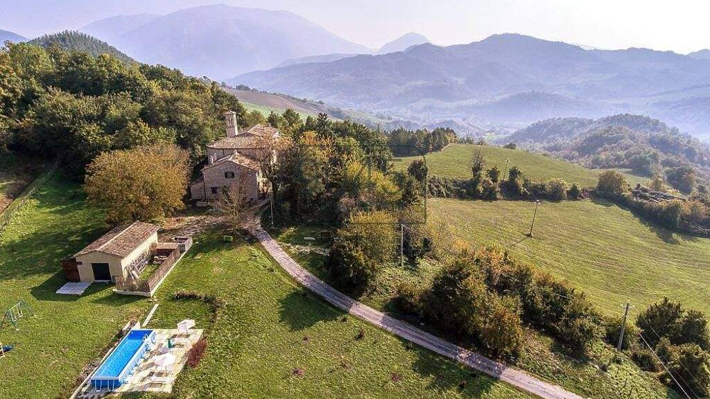 Dieses zauberhafte, ehemalige Pfarrhaus mit Kirche liegt eingebettet in die Hügellandschaft zwischen Piobbico und Urbania in den nördlichen Marken. Das Ende des 19. Jahrhunderts erbaute Anwesen wurde zwischen 2005 und 2010 liebevoll restauriert und präsentiert sich heute als charaktervolle Landresidenz in ruhiger, panoramischer Lage - ideal für ein privates Domizil, ein Boutique-Hotel oder eine Eventlocation.