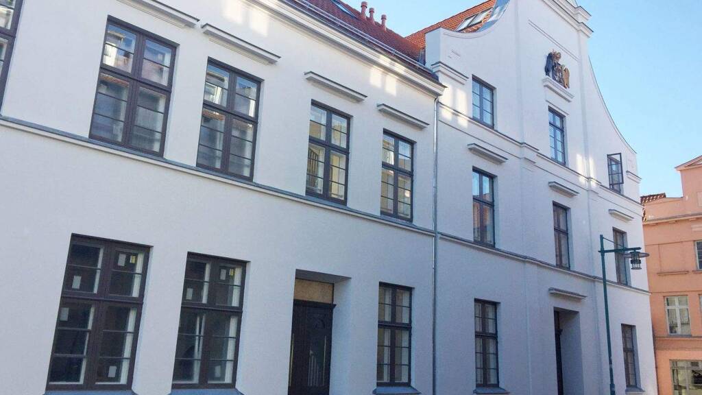 Beeindruckendes Stadthaus zentral im Güstrower Stadtkern gelegen. Der gesamte Gebäudekomplex wurde 2016 umfassend saniert. Das Wohn- und Geschäftshaus beherbergt insgesamt 9 Wohneinheiten und 1 Gewerbeeinheit.