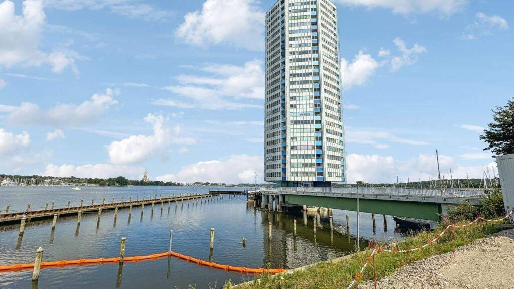 Ein besonderes Highlight ist der weite Blick aus der 23. Etage über die Schlei und grüne Felder. Genießen Sie gemütliche Stunden auf Ihrem privaten Balkon mit dem besten Blick auf den Sonnenuntergang.