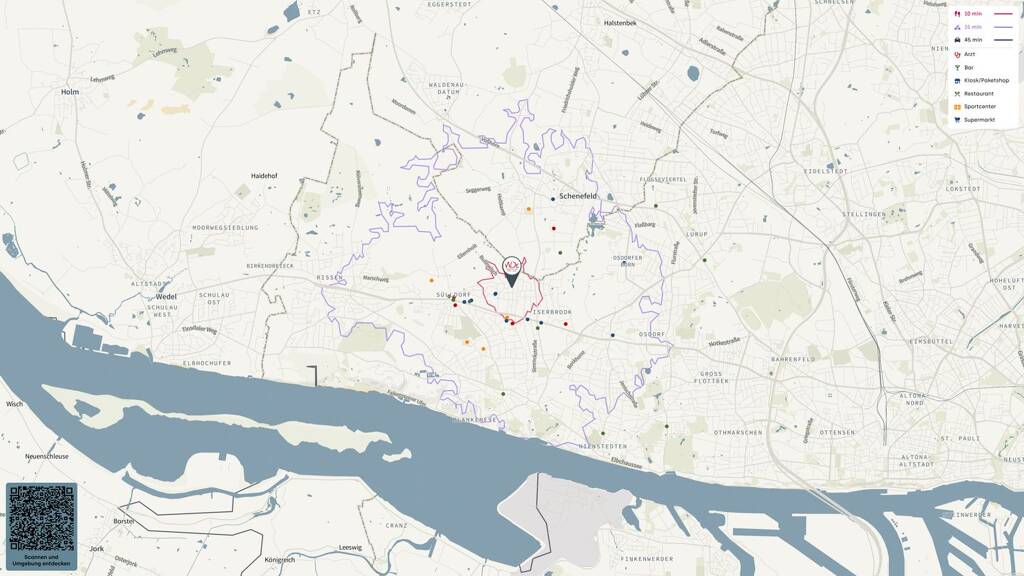 Die Wohnung am Sapperweg 7 in 22589 Hamburg liegt in einem gewachsenen Wohnumfeld im Westen der Stadt. Die Umgebung wirkt ruhig und grün geprägt, mit kurzen Wegen zu alltäglichen Anlaufpunkten. Nahversorgung Für den täglichen Einkauf liegen mehrere Optionen in der Nähe, darunter Nahkauf, Edeka und Erdkorn. Auch ein Kiosk mit Paketshop ist nicht weit entfernt und ergänzt die Versorgung im Alltag. Gastronomie Mit Spiros und Spiros befindet sich ein Restaurant in der näheren Umgebung. Damit sind unkomplizierte Abende außer Haus ohne lange Wege gut in den Alltag integrierbar. Gesundheit Eine hausärztliche Anlaufstelle ist mit der Praxis Dr. Eipper und Partner in der Nähe vorhanden. Das unterstützt eine praktische Organisation von Terminen im Wohnumfeld. Freizeit Für sportliche Aktivitäten liegt ein Sportcenter in der Umgebung. Insgesamt ordnet sich die Lage als ruhig, alltagsnah und gut eingebunden in das lokale Angebot ein.