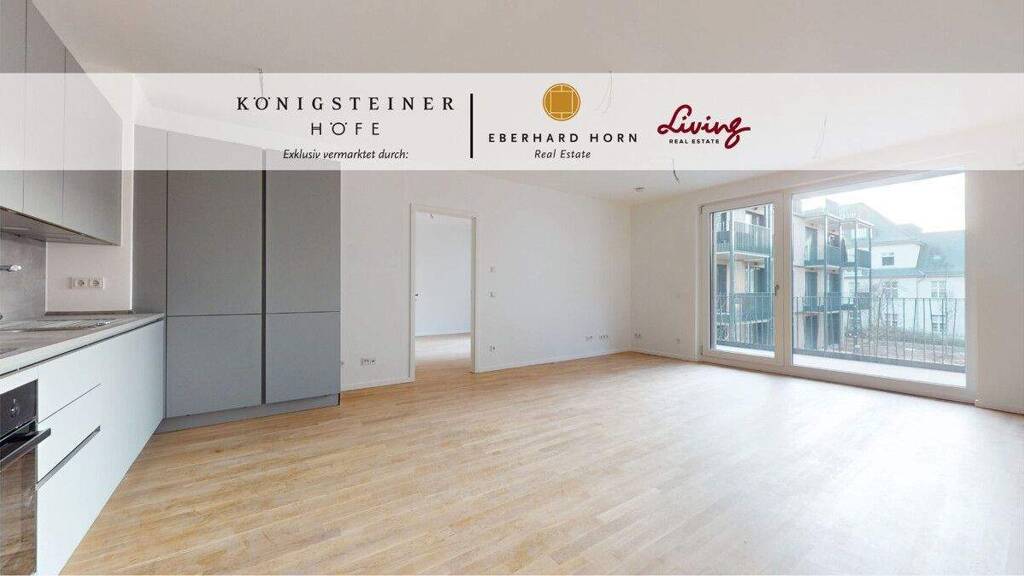 Modernes innerstädtisches Wohnen. Erstbezug der hochwertigen Wohnungen, gebaut in nachhaltiger Bauweise nach KfW55 EE. Die heterogenen Gebäude der Königsteiner Höfe sind durch einen großzügigen autofreien Innenhof verbunden, welcher sich durch eine jahreszeitlich abgestimmte Begrünung auszeichnet (mit blühenden Stauden und artenreichen Gräsern, begehbaren Grünflächen, Pflanzung von insgesamt 60 groß- und kleinkronigen Klimabäume auf dem Gelände).