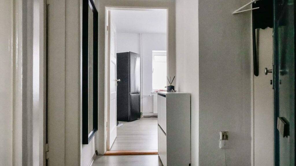 Der Grundriss ist funktional und gut durchdacht. Mittelpunkt der Wohnung ist die großzügige Wohnküche, die als Durchgangsraum ausgeführt ist und ausreichend Platz für einen Esstisch bietet. Diese Raumgestaltung schafft eine klare Trennung zwischen Wohn- und Schlafbereich und sorgt gleichzeitig für eine offene, kommunikative Wohnatmosphäre. Das Wohnzimmer ist gut proportioniert und lässt sich problemlos möblieren. Das Schlafzimmer ist zweckmäßig geschnitten und ebenso wie das Wohnzimmer straßenabseitig und damit sehr ruhig gelegen - zusätzlich ist die angrenzende Straße ist eine Anliegerstraße und Tempo-30-Zone. Das Badezimmer ist mit einer Dusche ausgestattet und ebenfalls erneuert. Der Eingangsbereich verbindet die Räume sinnvoll miteinander.
