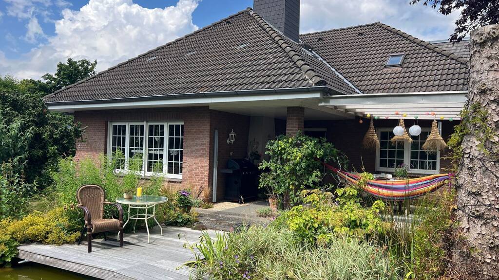 Dieses massiv gebaute Einfamilienhaus aus dem Jahr 1983 überzeugt durch seine großzügige Raumaufteilung und ein weitläufiges Grundstück, das vielfältige Nutzungsmöglichkeiten bietet. Im Erdgeschoss erwartet Sie ein lichtdurchflutetes, nach Süden ausgerichtetes Wohn- und Esszimmer mit direktem Zugang zur großen Terrasse und dem idyllischen Gartenteich – perfekt zum Entspannen oder für gesellige Abende. Eine separate Küche, ein Gäste-WC und eine Diele ergänzen das Raumangebot auf dieser Ebene. Zusätzlich bietet das Erdgeschoss eine 2-Zimmer Einliegerwohnung mit Badezimmer. Die Wohnung hat einen separaten Eingang.