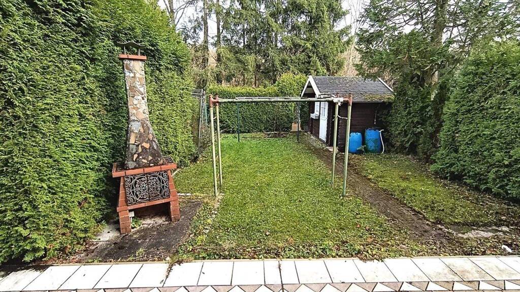 Der pflegeleichte, naturbelassene Garten mit nordöstlicher Ausrichtung lädt zum Entspannen ein und bietet mit einem Gartenhaus zusätzlichen Komfort. Eine Terrasse von ca. 15,75 m² ergänzt den Außenbereich und eignet sich perfekt für sommerliche Stunden im Freien.