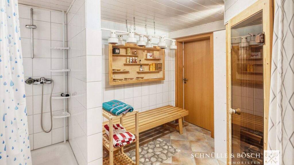 Der Teilkeller bietet mit drei Räumen ungeahnte Möglichkeiten. Besonders hervorzuheben ist der eigene Wellnessbereich mit Sauna und Dusche - Ihr privates Spa für die kalte Jahreszeit.
