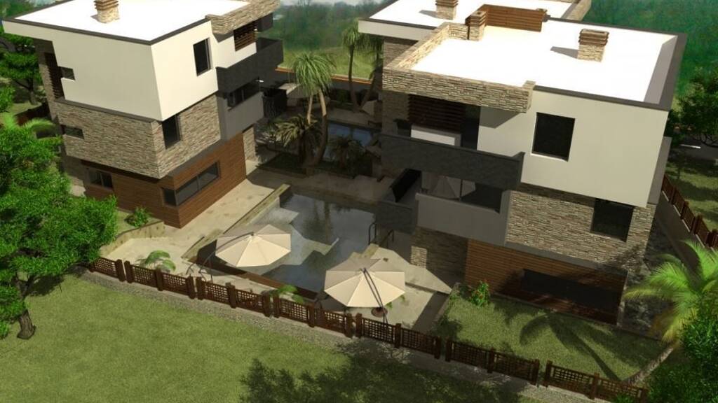 Zum Verkauf stehen 4 dreistöckige Häuser in Sveti Vlas im Rohbau.