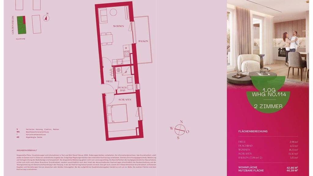 Tiefgarage vorhanden, Nutzfläche: 46,39 m², Anzahl der Schlafzimmer: 1, Anzahl der Badezimmer: 1, Anzahl Balkone: 1, Balkon-Terrassen-Fläche: 7,06 m², Bundesland: Bayern, Wohnungsnr.: 114 BA1