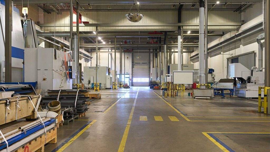 Produktionsfläche bei Dresden - Große Halle mit Büro und Kran.