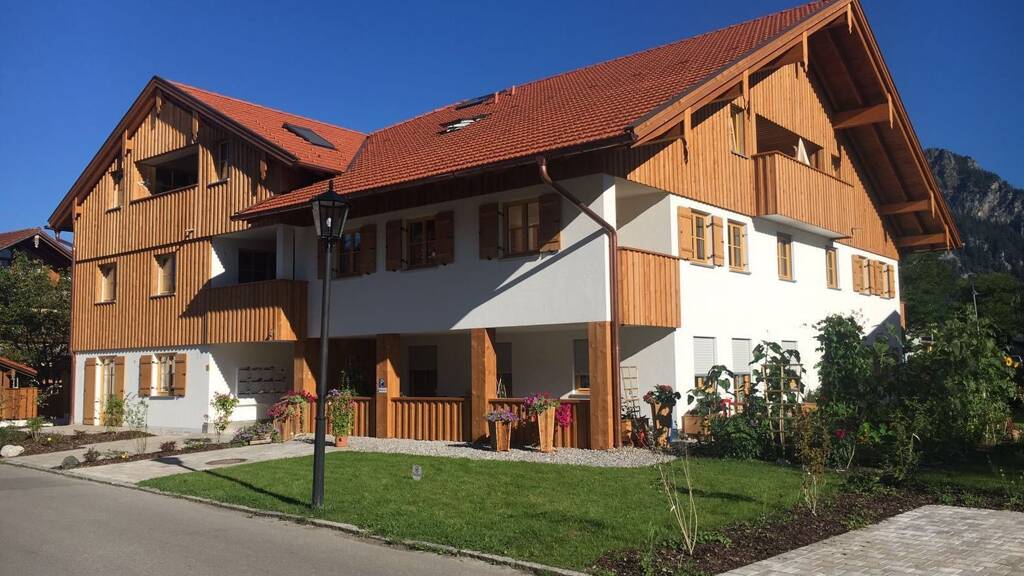 Hier stand ein ehemaliger Bauernhof, welcher abgetragen und nach den neuesten Regeln der Baukunst in gleichem Erscheinungsbild komplett wieder aufgebaut wurde. Die Wohnungen wurden alle in schwellenfreier Ausführung erstellt. Von den Terrassen und Balkonen haben Sie einen herrlichen Blick auf die Berge und zum Teil auch auf das Märchenschloss "Neuschwanstein".