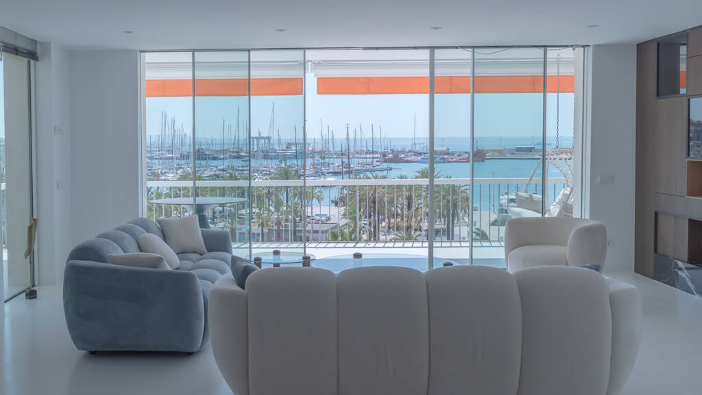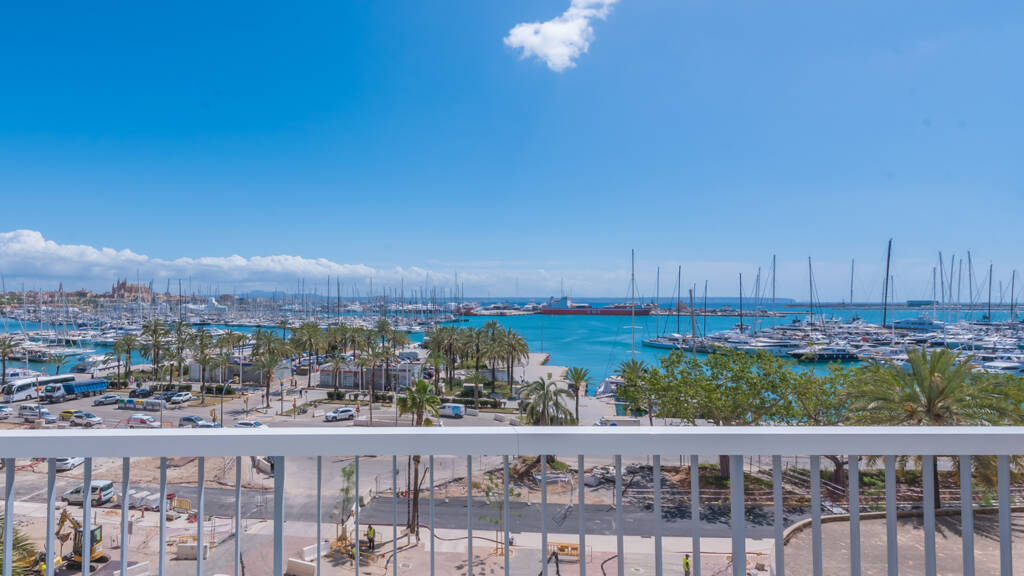 Luxus Wohnung am Paseo Maritimo in Palma, in der Nachbarschaft zum Auditorium, mit atemberaubendem Blick auf den Yachthafen sowie das Meer. Beste Lage, Supermarkt fussläufig, Gebäude mit 2 Eingängen. Sie teilt sich auf in 3 SchlaZi, 3 Bäder, grossem Wohnraum mit 31 m2 Terrasse. Sie ist ausgestattet mit Kunstharzfussböden, verfügt über Aufzug, 2 KFZ Stellpl. CEE: Klasse F. Raumaufteilung Die Aufteilung wurde modern gestaltet. Ein offener Eingangsbereich mit grosszügigen Essbereich und Küche laden zum Verweilen ein. Nahtlos geht es in den Wohnbereich mit seinen Terrassen über. Das Hauptschlafzimmer hat vom Bett aus ebenfalls direkten Meerblick. Zwei weitere Schlafzimmer ebenfalls mit Bad en Suite liegen im hinteren Bereich der Wohnung.