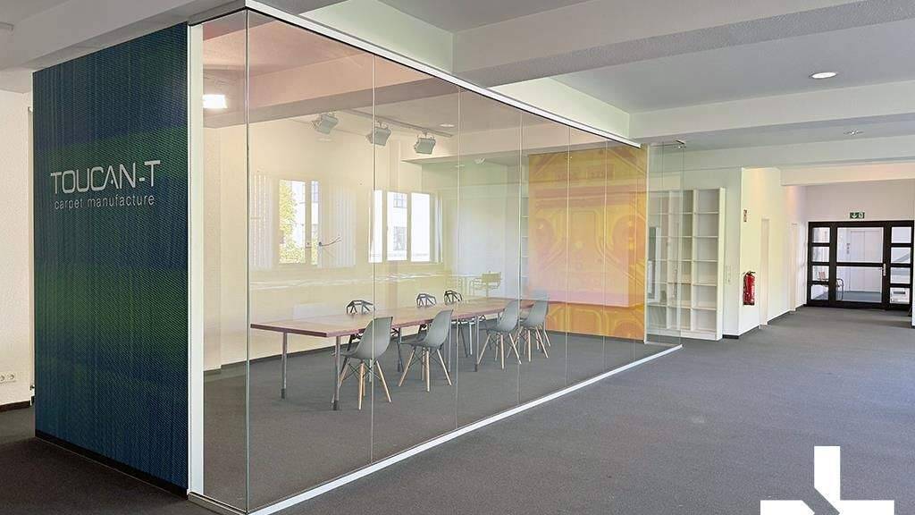 Aufteilung Beide Etagen sind über das offene Treppenhaus sowie einen Aufzug komfortabel erreichbar. Das 1. Obergeschoss verfügt über einen Besprechungsraum mit Glastrennwänden sowie ein weiteres, abgetrenntes Büro mit Glaswänden. Diese Räume bieten ideale Möglichkeiten für konzentriertes Arbeiten oder Kundentermine. Die Einheit ist in drei Teilbereiche gegliedert, die unterschiedliche Arbeitsformen - von offenen bis hin zu halboffenen Flächen - ermöglichen und damit sowohl Wachstum innerhalb der Mieteinheit als auch die Präsentation von Produkten zulassen. Eine großzügige Teeküche im Sozialraum steht ebenfalls zur Verfügung.