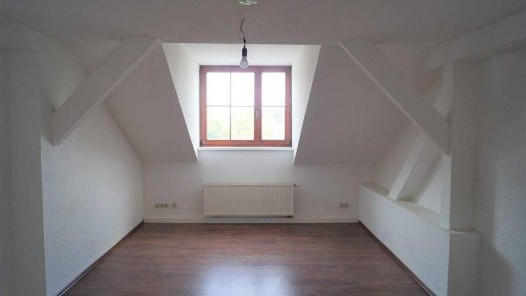 Diese attraktive Dachgeschosswohnung mit fabelhaftem Ausblick, hat eine Wohnfläche von 75 m² und liegt im Stadtzentrum von Frankfurt (Oder). Sie ist ideal für junge Leute oder Junggebliebene. Die Wohnung befindet sich in einer kleinen Nebenstraße, deren Charakter von sanierten Altbauten geprägt ist. Über den zentralen Flur erreicht man fast alle Zimmer, die mit dunklen Laminatboden in Holzoptik ausgestattet sind. Auf der rechten Seite befindet sich das geräumige Wohnzimmer und gleich nebenan das Schlafzimmer. Das Wannenbad auf der anderen Seite der Wohnung ist mit hellen Fliesen sehr zeitlos und bietet ausreichend Abstellfläche. Die große Wohnküche bietet Ihnen viel Platz für gemeinsame Kochabende mit der Familie und mit Freunden. Ein kleiner Arbeitsbereich im Flur rundet dieses Wohnungsangebot ab. Geprägt durch die Dachschrägen und integrierten Dachbalken, die sich durch alle Zimmer ziehen, ist hier Ihre Kreativität gefragt, um diesen Räumlichkeiten Ihren eigenen Stil anzupassen. Der ruhige Hinterhof lädt zum Verweilen ein und wird durch den Hauswartservice regelmäßig gepflegt.