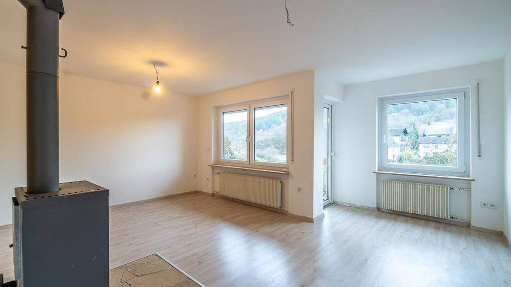 . umfassend sanierte Wohnung . neue Bodenbeläge, Fenster und Türen . großzügiger Grundriss . sonnige Terrasse (ca. 15 m²) . Holzofen im Wohnzimmer . modernes Bad mit Dusche, Wanne & Fußbodenheizung . separates Gäste-WC . großer Abstellraum mit Waschmaschinenanschluss . optional Einbauküche nach Vereinbarung
