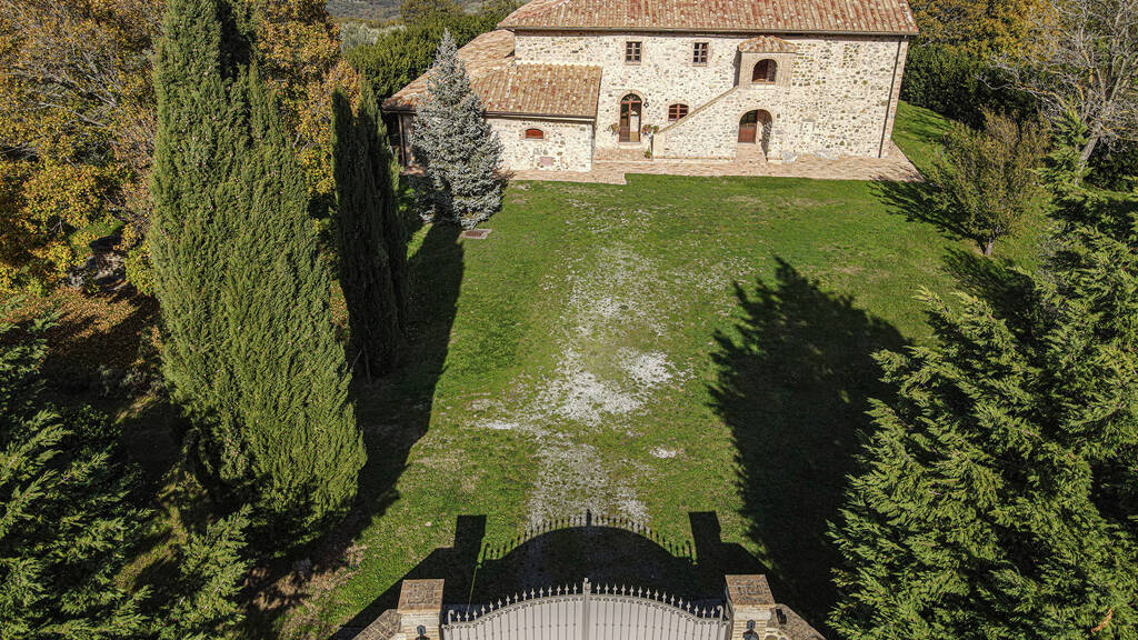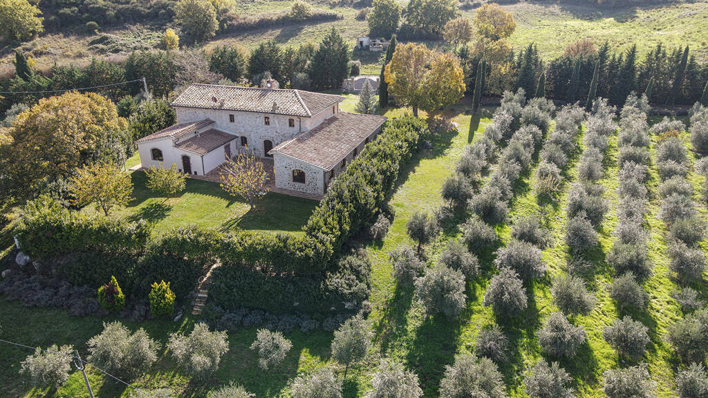 Bio-Bauernhof komplett umzäunt, bestehend aus einem komplett renovierten typisch toskanischen Bauernhaus mit einer Fläche von 550 qm, wie folgt: Im Erdgeschoss befinden sich 4 fein restaurierte Apartments, alle mit Wohnzimmer und offener Küche, Eingang, Schlafzimmer und Gästebad; ein großes dreifaches Wohnzimmer mit sichtbaren Balken und Bögen, zwei Badezimmer und Rohbaufläche für eine Küche (mit bereits vorhandenen Installationen, aber nur zum Abschluss). Dieses Stockwerk kann als Agriturismo mit Restaurant und Verkostungsraum für typische Produkte genutzt werden (nur Möbel fehlen, und die Lizenzen sind bereits vorhanden, um sofort mit dem Betrieb zu beginnen). Obergeschoss: restaurierte Herrschaftswohnung mit doppeltem Wohnzimmer und antikem Kamin, 4 große Schlafzimmer und Badezimmer. Um das Bauernhaus herum gibt es einen bepflanzten Park mit Lorbeerhecken, Obstbäumen und Hochstamm-Bäumen, einem artesischen Brunnen und einer automatischen Bewässerungsanlage. Das Anwesen umfasst auch 28 Hektar Land, davon ca. 5 Hektar biologischer IGP-Toskanischer Olivenhain bereits in Produktion; 12 Hektar Ackerland; restliche Ackerland-Bäume und Mischwald.