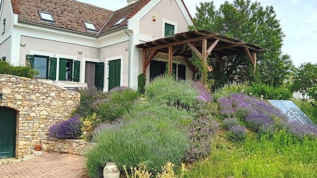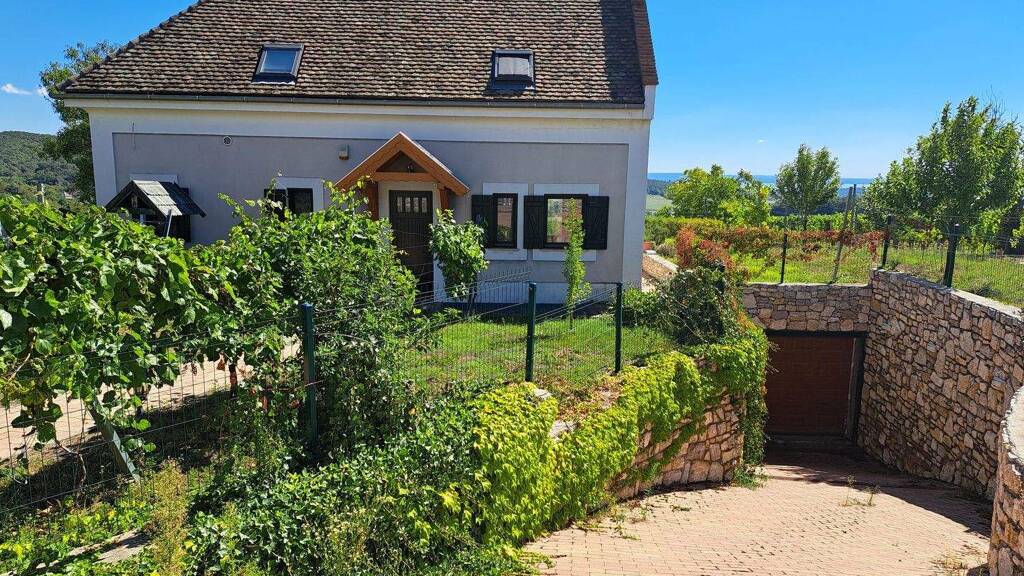 In malerischer Lage mit Panoramablick auf den Plattensee erwartet Sie in Óbudavár, einem der kleinsten Orte des Landes, ein nahezu autarkes Familienhaus! In idyllischer Umgebung, nahe dem Plattensee und doch fernab vom Trubel, empfehle ich Ihnen dieses wundervolle Familien-/Ferienhaus im umzäunten Garten eines malerischen Ortes im nördlichen Teil des Nivegy-Tals! In jedem Winkel des 2013 erbauten Hauses finden Sie die Harmonie von Form und Funktion sowie die Liebe zum Detail. Die durchdachte Planung zeigt sich in der vorausschauend gewählten Wärmedämmung, die die Atmungsaktivität der Ziegelwände nicht beeinträchtigt, den hochwertigen und hervorragenden Wärmedämmeigenschaften der Holzfenster und -türen, den sorgfältig ausgewählten wärme- und kälteisolierenden Materialien und der harmonischen und praktischen Raumaufteilung. Das Anwesen ist äußerst pflegeleicht. Eine Fußbodenheizung mit Wärmepumpe sorgt im gesamten Gebäude für angenehme Temperaturen, da sie etagenweise individuell geregelt werden kann. Ein einzigartiger Kachelofen verbindet Küche und Wohnzimmer und ergänzt dies. Dank der hervorragenden Wärmedämmung sind die jährlichen Energiekosten, gemessen an der Wohnfläche, sehr niedrig. Das Erdgeschoss mit seiner offenen, rustikalen Decke umfasst einen Flur, ein Gäste-WC, einen Arbeitsbereich, ein Esszimmer, eine Küche, eine Speisekammer und ein Wohnzimmer mit Zugang zum Garten. Das offene, beeindruckende Dachgeschoss mit sichtbaren Holzbalken bietet zwei Schlafzimmer, ein separates Badezimmer mit Badewanne und Dusche, einen Ankleideraum sowie einen kombinierten Flur und Wohnbereich. Das Untergeschoss beherbergt einen separaten Wohnbereich mit Schlafzimmer, Badezimmer, Technikraum und Abstellraum. Neben der angeschlossenen Garage wurde ein größerer Raum geschaffen, der zuvor als Obstlager diente und sich ideal als Werkstatt, Lager oder auch für Freizeitaktivitäten (Yoga, Fitness, Sauna) eignet. Der gemütliche, gewölbte Weinkeller bietet direkten Zugang zum Garten. Auf dem 2982 m² großen Grundstück wachsen ertragreiche Weinreben, und neu gepflanzte Zierpflanzen verleihen Terrasse und Eingangsbereich eine gemütliche und duftende Atmosphäre – das ganze Haus ist von Natur umgeben! Wer sich von dieser besonderen Region mit ihrer Mischung aus Beständigkeit und Vielfalt angezogen fühlt, kann von hier aus in wenigen Schritten unvergessliche Erlebnisse und Abenteuer erleben!