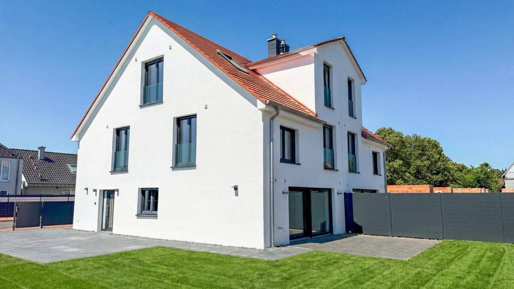 Diese exklusive Doppelhaushälfte bietet modernen Wohnkomfort auf höhchstem Niveau. Mit einer Gesamtfläche von 180 m² auf drei Ebenen und einem 374 m² großen Grundstück eignet sich dieses Haus perfekt für Familien oder Paare, die großzügiges Wohnen schätzen. Das Gebäude ist im Juni 2025 fertiggestellt und entspricht höhsten energetischen sowie baulichen Standards. Es ist mit einer innovativen Nibe-Heizungsanlage ausgestattet, die nicht nur für effizientes Heizen sorgt, sondern auch die einzelnen Zimmer be- und entlüften kann ein erheblicher Komfort- und Effizienzgewinn. Der Eingangsbereich ist in einen großzügigen, offenen Wohn- und Essbereich mit integrierter Küche. Große Fensterflächen sorgen für eine helle und freundliche Atmosphäre. Durch die offene Gestaltung wird ein modernes und kommunikatives Wohnkonzept ermöglicht. Im ersten Obergeschoss befinden sich das großzügige Hauptbadezimmer, ausgestattet mit hochwertigen Materialien und modernen Sanitärelementen. Drei großzügige Schlafzimmer, die vielseitig nutzbar sind ob als Schlaf, Gäste, Ankleide oder Kinderzimmer. Das vollständig ausgebaute Dachgeschoss bietet ein zusätzliches Highlight: Ein großzügiges Studiozimmer, das als Gäste- oder als Arbeitsbereich genutzt werden kann. Zusätzlich befindet sich ein weiteres Badezimmer mit Dusche und WC, welches sich als perfektes Bad für Gäste oder Familienmitglieder nutzen lässt. Wohnfläche -Erdgeschoss: ca. 61,70m² -Obergeschoss: ca. 61,03m² zzgl. ausgebauter -Studioebene: ca. 57,34m² Wohn-/ Nutzfläche: ca. 180,07m²