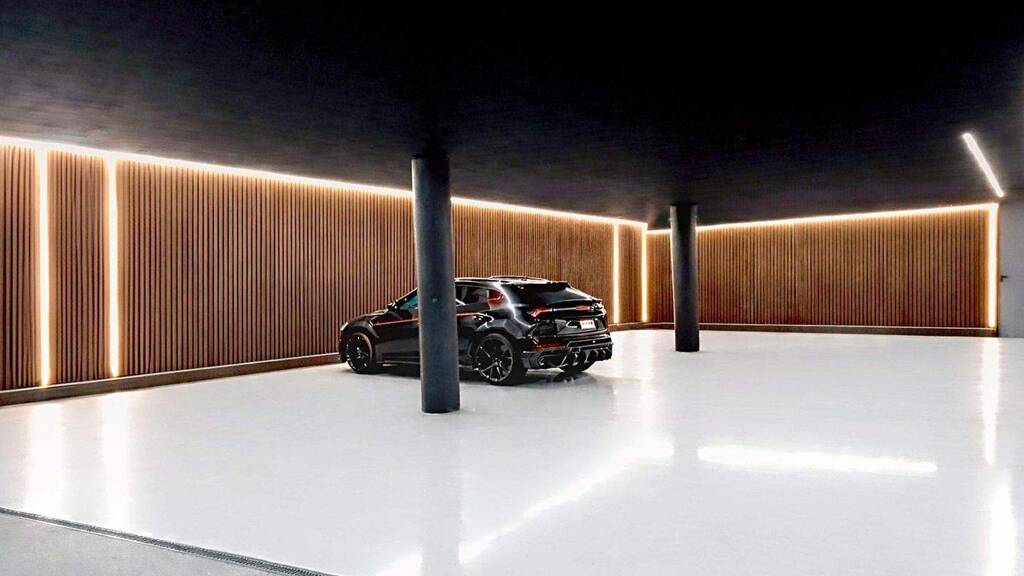 Die Garage im Keller -3 bietet Platz für bis zu 10 Fahrzeuge und verfügt über Wassertanks, einen Geräteraum und ein Gästebad.