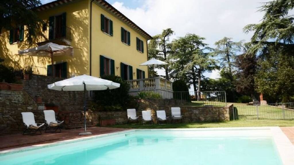 Die Villa Toscana befindet sich auf einem großen privaten Grundstück mit einem eigenen Obstgarten und Olivenhain. Auch die Innenräume bieten Gästen viel Platz zum Entspannen. Ein wenig versteckt auf der Rückseite liegt der private Pool. Hier können Sie auf einem Liegestuhl die toskanische Sonne genießen oder sich nach dem Schwimmen unter die gemütliche schattige Terrasse zurückziehen. Mit drei Schlafzimmer und zwei Badezimmer bietet die Villa Solata viel Platz und Raum für sechs Gäste. Die Atmosphäre im Haus ist gemütlich mit komfortablen, traditionellen Möbeln und schönen originalen Details wie der eleganten Marmortreppe und mehreren Wohnbereichen.