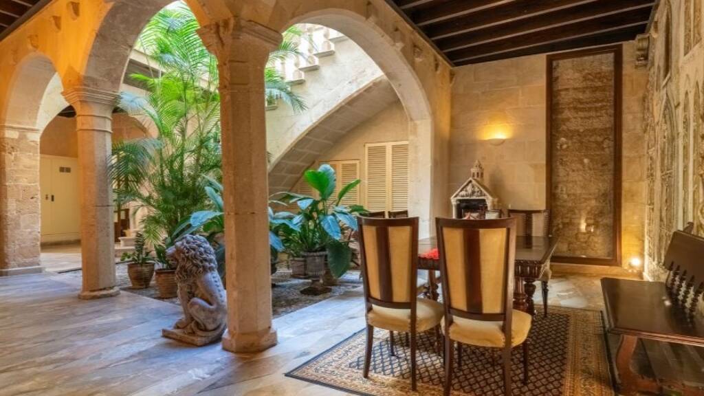 Wenn Sie das imposante Haupteingangstor des Palastes passieren, werden Sie von einem malerischen Innenhof mit charakteristischem mallorquinischem Pflaster empfangen. Hier spüren Sie sofort die einzigartige Atmosphäre, die den historischen Palästen der Insel eigen ist. Vom Innenhof führt ein beeindruckender Gang in den Keller, der neben einem imposanten Weinkeller und einem großzügigen Büro auch ein Badezimmer und einen Wellnessbereich mit Sauna und Bad beherbergt.