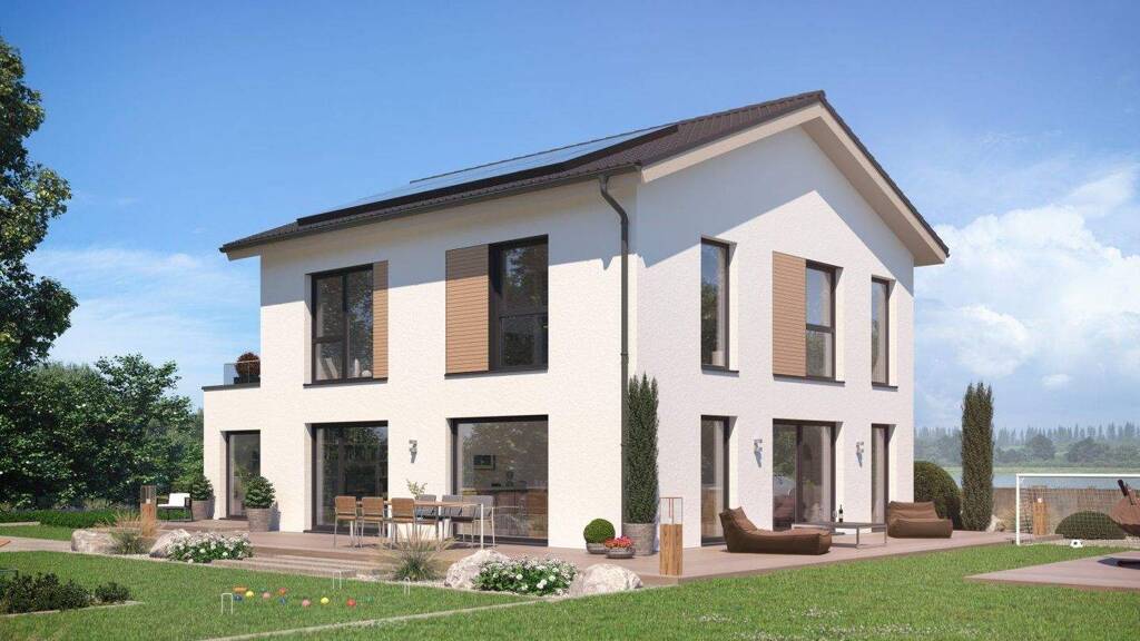In Ihrem neuen LivingHaus sind zahlreiche hochwertige Ausstattungsmerkmale enthalten. Die moderne Grundausstattung umfasst stilvolle Sanitäranlagen, edle Türen und attraktive Bodenbeläge, alles optimal aufeinander abgestimmt. Sie können sich auf eine komplett ausgestattete Küche freuen, die individuell nach Ihren Vorstellungen geplant wird. Die Innenausbaumaterialien, inklusive Fliesen für das gesamte Erdgeschoss und bodengleicher Duschen mit Echtglasabtrennung, sind ebenfalls Teil Ihres Pakets. Mit einem hohen Vorfertigungsgrad und modernen Wärmepumpentechniken sorgt Ihr neues Zuhause nicht nur für ein angenehmes Raumklima, sondern auch für effizientes Heizen. Zudem verbessern aluminiumgeschäumte Rollläden den sommerlichen Hitzeschutz und tragen zur Wärmedämmung im Winter bei. All diese Features machen Ihr Fertighaus zu einem echten "Wie ich es will Fertighaus".