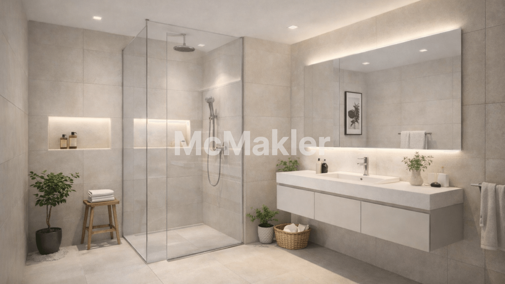 Diese moderne Wohnung überzeugt durch eine klare Architektur, helle Räume und eine durchdachte Raumaufteilung. Der großzügige Wohnbereich mit offener Küche und Essplatz bildet das Herzstück der Wohnung und schafft eine einladende Atmosphäre für gemeinsames Wohnen und Entspannen.