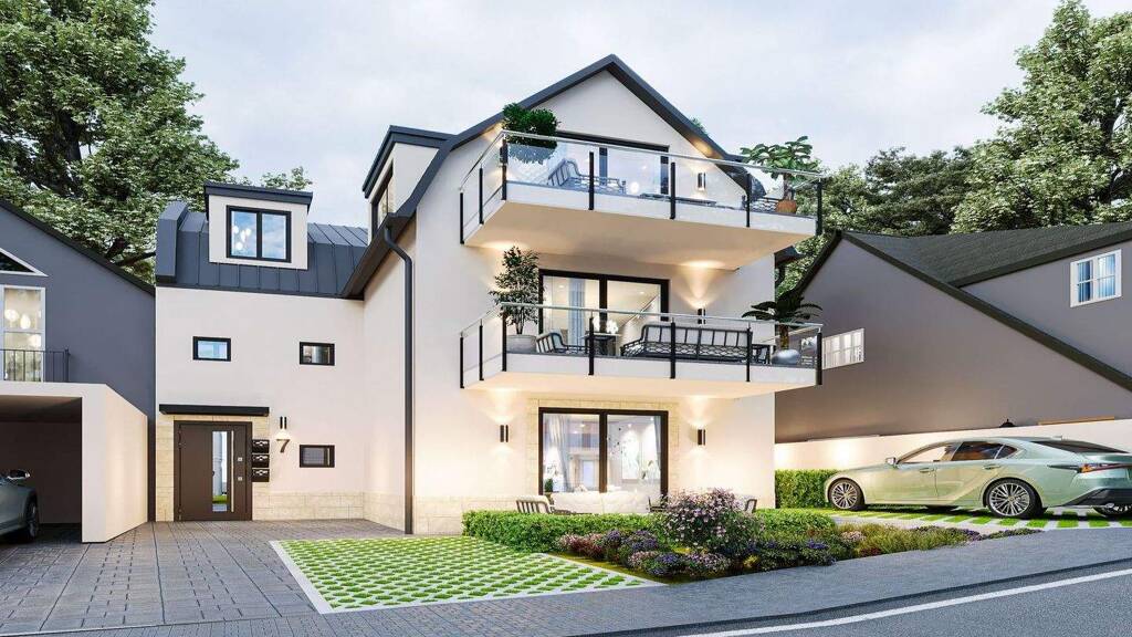 Das Gebäude wird nach dem energieeffizienten KfW-55-Standard errichtet und steht damit für nachhaltiges Wohnen sowie niedrige Energiekosten. Ein Aufzug verbindet alle Etagen des Hauses und sorgt für einen komfortablen Zugang. Im Untergeschoss stehen ein eigener Kellerraum sowie eine gemeinschaftliche Waschküche zur Verfügung. Zur Wohnung gehört außerdem ein PKW-Stellplatz, der mit einem Aufpreis von 15.000 € berechnet wird. Auf Wunsch kann zusätzlich ein Carport realisiert werden. Sämtliche Erschließungskosten und Zuwegungen sind bereits im Kaufpreis enthalten.