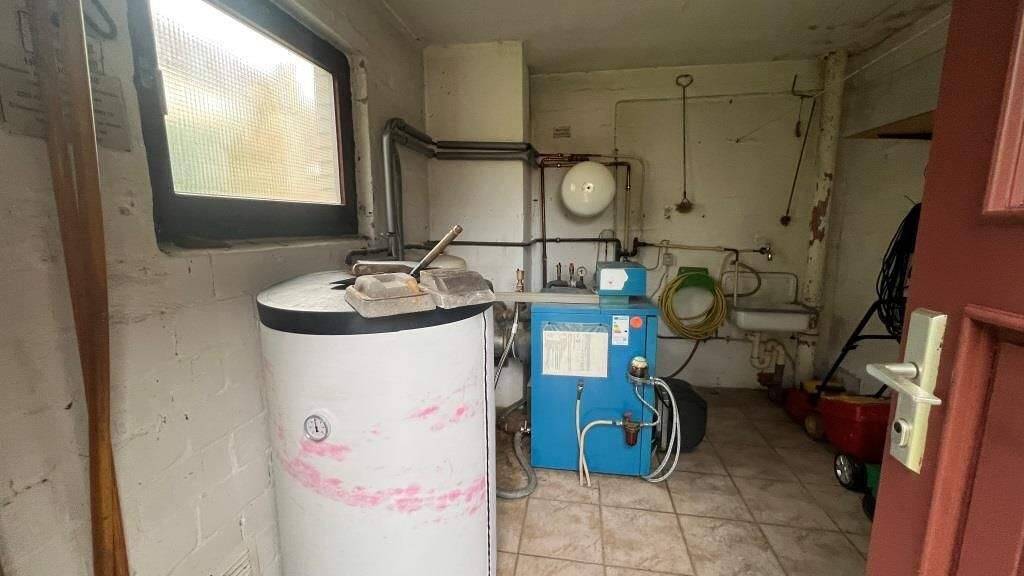 Zu diesem Objekt gehören zwei praktische Einzelgaragen, die beidseitig des Gebäudes liegen. Im hinteren, gartenseitigen Bereich befindet sich der Heizungsraum mit einer Ölheizung. Der erdverlegte Öltank ist über einen leicht zugänglichen Tankdeckel im Garten erreichbar. Aufteilung Erdgeschoss