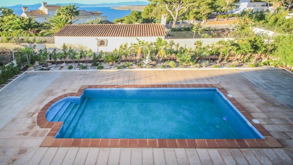 Freistehendes Einfamilienhaus mit Meerblick und Pool im beschaulichen und äußerst ruhigen und sicheren Wohngebiet Badia Gran, zur Gemeinde Llucmajor gehörend, in unmittelbarer Nähe zu den schönsten Badebuchten Mallorcas, mit einer hervorragenden Infrastruktur, sämtlichen Einkaufsmöglichkeiten, Ärzten, Schulen, Kindergärten und Golfplätzen in unmittelbarer Nähe.