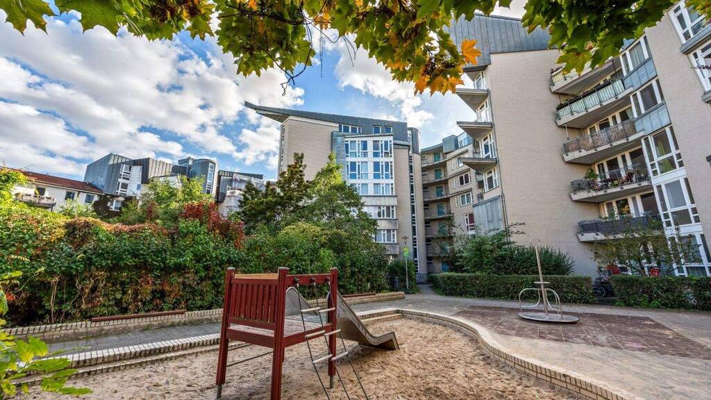 Die großzügige Außenanlage ist schön angelegt und bietet neben der Möglichkeit in der Sonne zu flanieren noch mehrere Grünanlagen mit 6 gepflegten Spielplätzen sowie weiteren Freizeitangeboten für die Mieter wie z.B. einer fest installierten Tischtennisplatte.