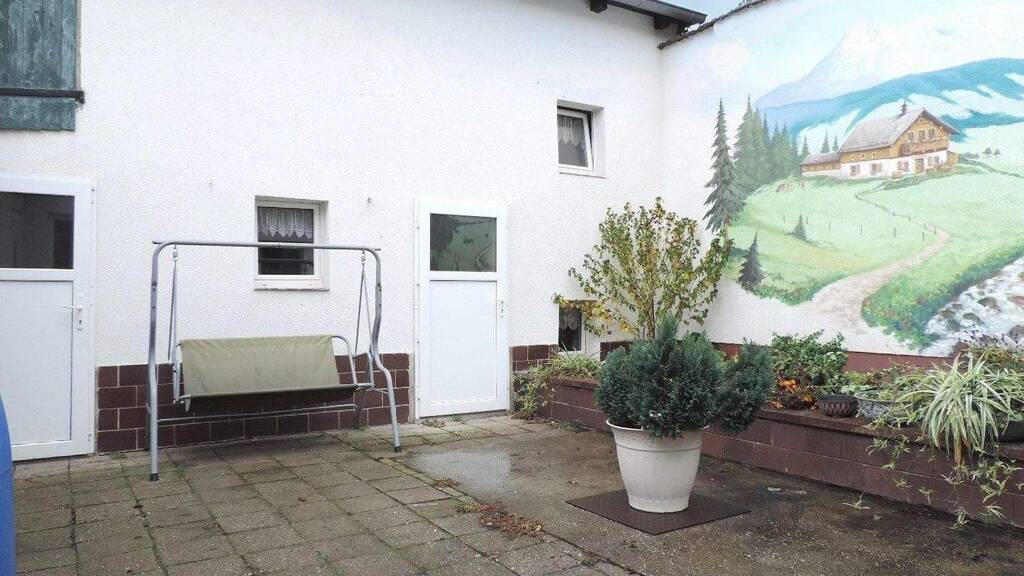 Es wird über einen zentralen Flur betreten. Im Erdgeschoss befinden sich, das Wohnzimmer, das Schlafzimmer, eine Küche mit angrenzendem Esszimmer sowie das tageslicht Bad mit Dusche und WC. Der Heizraum und das weitere Nebengelass sind über den geschlossen Innenhof zugänglich. Durch seinen innovative Gestaltung lädt der Innenhof auch zum gemütlichen Verweilen ein. Im hinteren Teil des Grundstücks befindet sich der Garten. Dieser wurde hauptsächlich für den Anbau von Lebensmitteln genutzt.