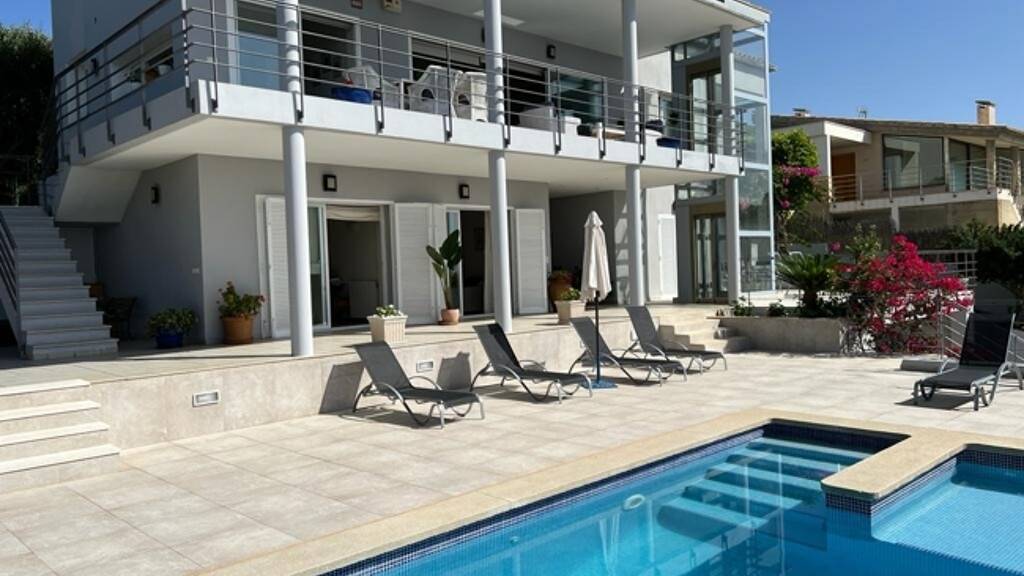 Diese Villa, idyllisch in Alcudia gelegen, bietet eine großzügige Wohnfläche von ca. 300m², verteilt auf zwei Etagen und verspricht ein luxuriöses Wohngefühl inmitten einer paradiesischen Umgebung. Das Herzstück ist das geräumige Wohnzimmer, das durch seinen einladenden Kamin einen Hauch von Gemütlichkeit erhält. Hier können Sie entspannte Abende in wohliger Atmosphäre verbringen und dabei den Blick auf das Meer vor Ihren Augen genießen. Die Villa verfügt über insgesamt vier Schlafzimmer, die allesamt großzügig gestaltet sind und einen traumhaften Blick auf die Umgebung bieten. Jedes Schlafzimmer wurde mit viel Liebe zum Detail gestaltet, um höchsten Komfort und Privatsphäre zu gewährleisten. Für diejenigen, die gerne in die Welt der Literatur eintauchen, steht eine Bibliothek bereit. Die moderne Klimaanlage sorgt das ganze Jahr über für angenehme Temperaturen und rundet das Wohngefühl ab. Ob warme Sommertage oder kühle Winterabende - Ihr Zuhause passt sich stets Ihren Bedürfnissen an.