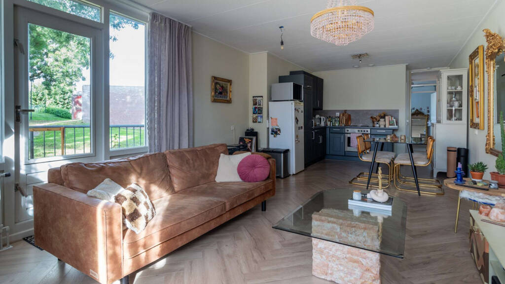 Willkommen in dieser komplett renovierten Wohnung im Erdgeschoss der exklusiven Wohnanlage "Aan de Weverij". Diese stilvolle Residenz bietet eine harmonische Kombination aus modernem Komfort und zeitlosem Design. Der Zugang zur Wohnung erfolgt über einen Gemeinschaftseingang mit Briefkästen, Gegensprechanlage und einem einladenden Treppenhaus.