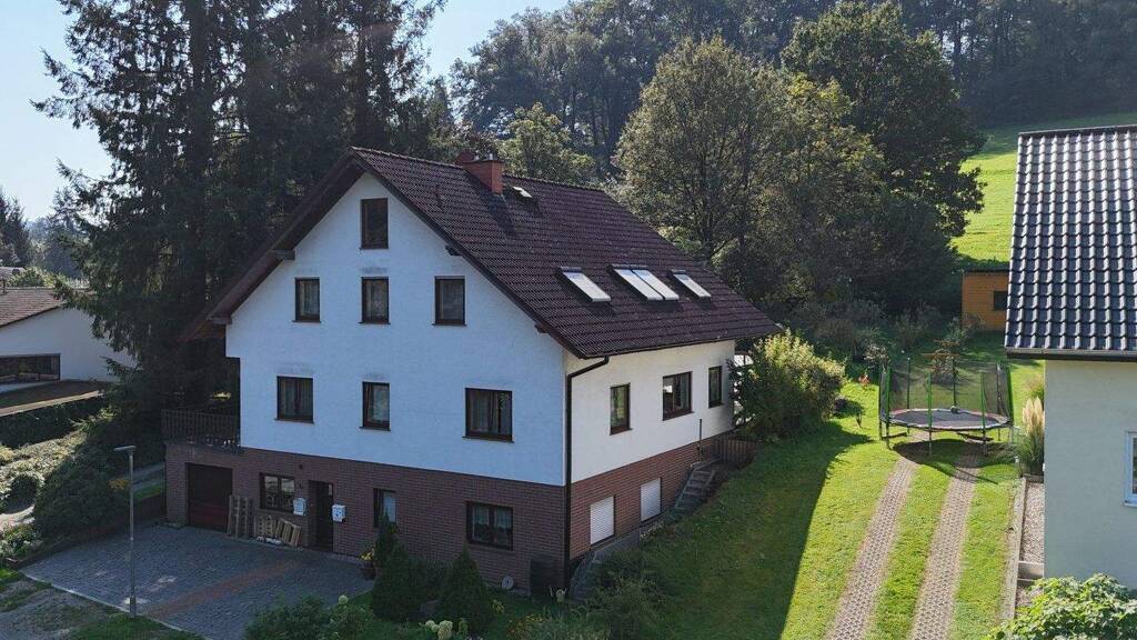 Das Haus wurde 1990 massiv gebaut, ist voll unterkellert und besitzt im Obergeschoss eine großzügige Einliegerwohnung. Hinter dem Haus befindet sich ein liebevoll angelegter und gepflegter Garten, der viel Raum zum Entspannen bietet. Vor dem Haus stehen mehrere Stellplätze zur Verfügung.