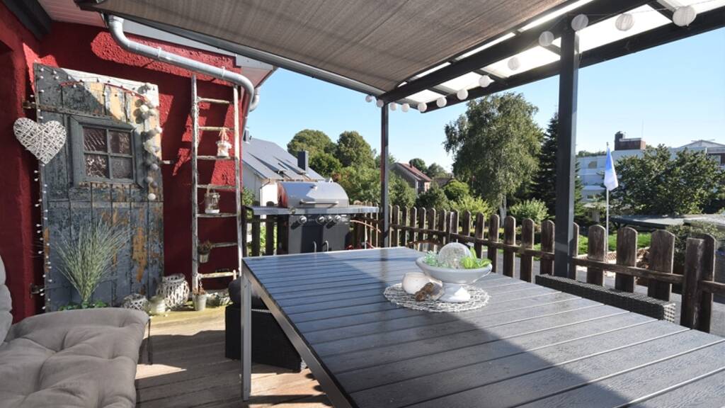 Das markante rote Haus ist einigen Lägerdorfern vielleicht noch als Feuerwehrgerätehaus bekannt und bietet nun Platz für zwei Wohnungen mit jeweils eigenen Eingängen. Der fordere Eingang führt über eine Treppe in die Hauptwohnung, die sich über das gesamte Obergeschoss und Dachgeschoss mit insgesamt ca. 148 m² Wohnfläche, erstreckt. Über den Flur erreicht man das geräumige Vollbad mit Fußbodenerwärmung, ein Schlafzimmer, eine Küche mit ausreichend Platz für eine gemütliche Essecke und ein Wohnzimmer, über welches man eine überdachte Dachterrasse mit Südwest-Ausrichtung erreicht. Im Flur führt eine Holztreppe in das ausgebaute Dachgeschoss mit einem Schlafzimmer inkl. Ankleideraum und einem Arbeitszimmer bzw. Kinderzimmer.