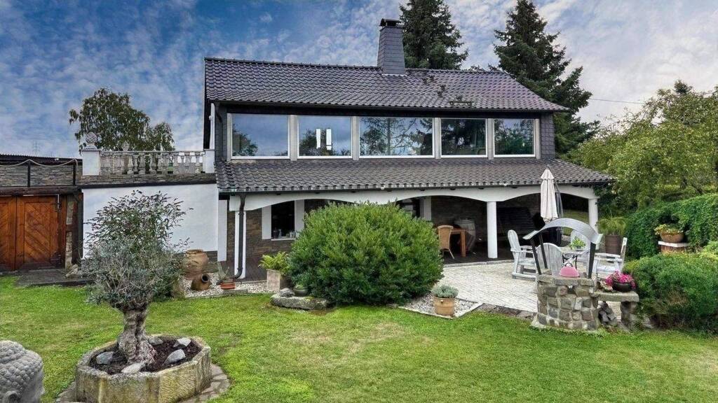 Dieses Einfamilienhaus vereint Komfort, Stil und Freizeitwert auf höchstem Niveau. Ob im gemütlichen Wohnzimmer am Kamin oder beim Entspannen im Poolbereich - hier genießen Sie Lebensqualität pur.