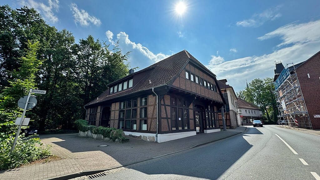 Diese extrem zentral gelegene Gewerbefläche liegt in einem Wohn- und Geschäftshaus an der Soltauer Rathauskreuzung und bietet damit besondere Sichtbarkeit und gute Erreichbarkeit. Die Fläche hat eine Größe von 176 m² und liegt im Erdgeschoss des markanten Fachwerkgebäudes.