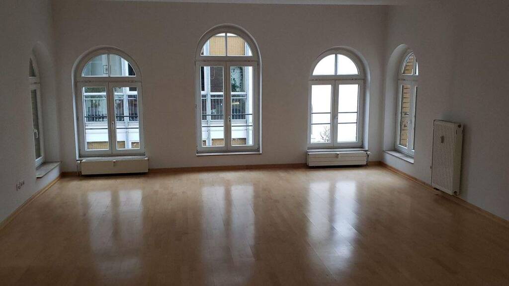 3-Raum-Wohnung mit einer Fläche von ca. 90 m². Im Wohnzimmer ist Eichenstabparkett verlegt, in den beiden anderen Zimmern befindet sich Laminatboden.
