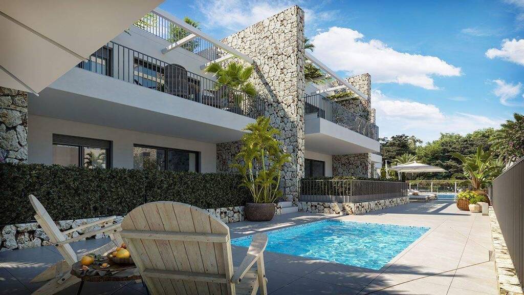 Die Apartments verfügen über Gemeinschaftspools, darunter ein Kinderpool, und angelegte Gartenbereiche, wo Sie das angenehme mediterrane Klima genießen können. Darüber hinaus liegt die Wohnanlage nur 100 Meter von der nächsten Bucht entfernt. Die Apartments haben drei Doppelschlafzimmer, zwei voll ausgestattete Bäder und sind nach Südosten ausgerichtet. Die in den Wohnbereich integrierte Küche schafft großzügige Weitläufigkeit und lichtdurchflutete Räume. Die Erdgeschosswohnungen verfügen über großzügige, überdachte Terrassen und einen eigenen Gartenabschnitt. Die Penthouse-Wohnungen bieten Meerblick und über eine Treppe von der Terrasse Zugang zu einer privaten Dachterrasse. Zu jeder Wohnung gehört ein PKW-Stellplatz im Außenbereich.