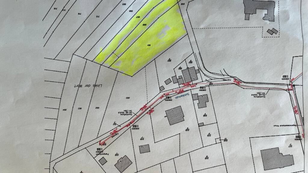 Die Bebauung befindet sich bereits seitlich und hinter dem Grundstück.