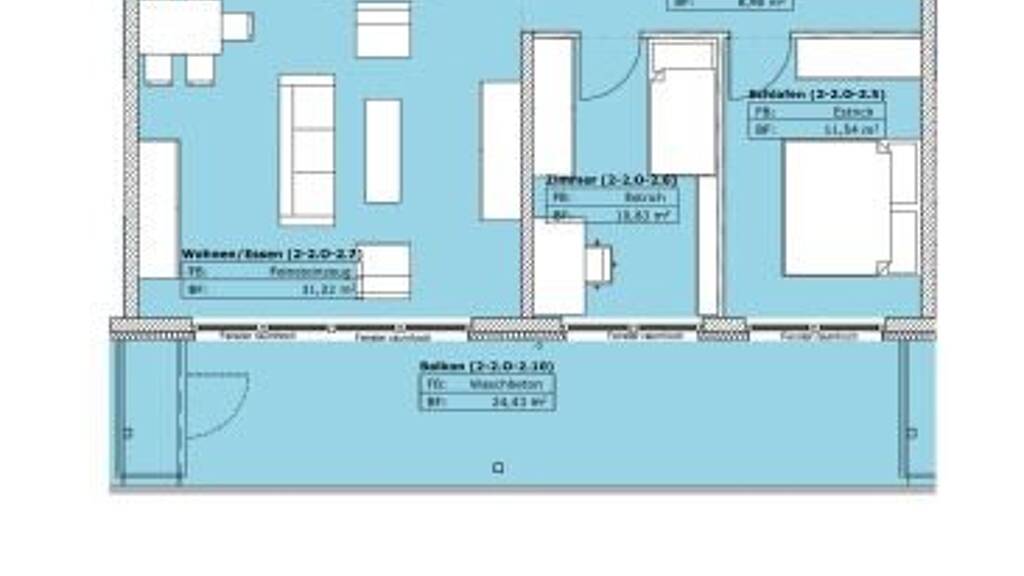 • 3-fach verglaste Fenster, im Wohnzimmer und in den beiden Schlafräumen raumhoch zum Balkon