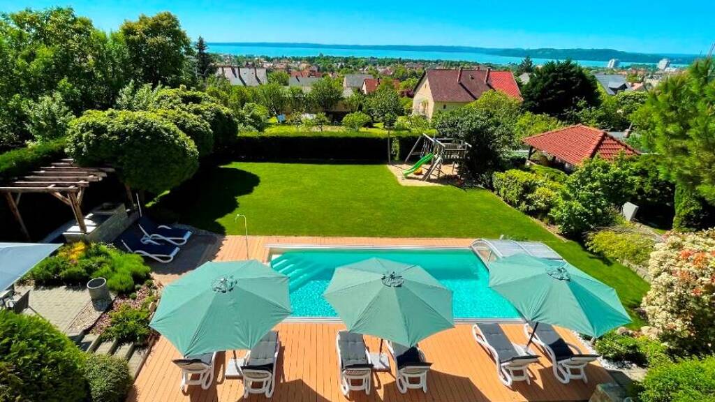 In Balatonfüred steht ein exklusives, hochwertig ausgestattetes Gästehaus mit insgesamt 6 separaten Apartments und atemberaubender Panorama-Aussicht zum Verkauf. Die Immobilie befindet sich in einem gepflegten Zustand, wurde 2008 erbaut und zuletzt 2021 umfassend renoviert. Das Anwesen verteilt sich auf 3 Etagen und bietet eine Wohnfläche von ca. 350 m² auf einem 1.000 m² großen Grundstück.
