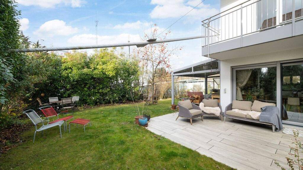 Das Herzstück des Hauses im Erdgeschoss ist der lichtdurchflutete Wohn- und Essbereich. Die nahtlos integrierte, offene Küche ist mit Premium-Geräten von Miele und Bora ausgestattet und lässt keine Wünsche offen. Ein praktisches Gäste-WC sorgt auf dieser Ebene für zusätzliche Flexibilität. Im Obergeschoss erwarten Sie drei gut geschnittene Schlafzimmer, die sich ideal als Eltern-, Kinder-, Gäste- oder Arbeitszimmer nutzen lassen. Zudem bietet hier ein Balkon einen schönen Blick ins direkte Umfeld. Ein geräumiges Studio im Dachgeschoss schafft weiteren Freiraum für Ihre Ideen. Das absolute Highlight auf dieser Ebene ist die eigene finnische Sauna als privater Rückzugsort für pure Entspannung. Im Untergeschoss findet sich ein individuell nutzbarer Hobbyraum, der sich perfekt für das Home-Office oder sportliche Aktivitäten eignet.