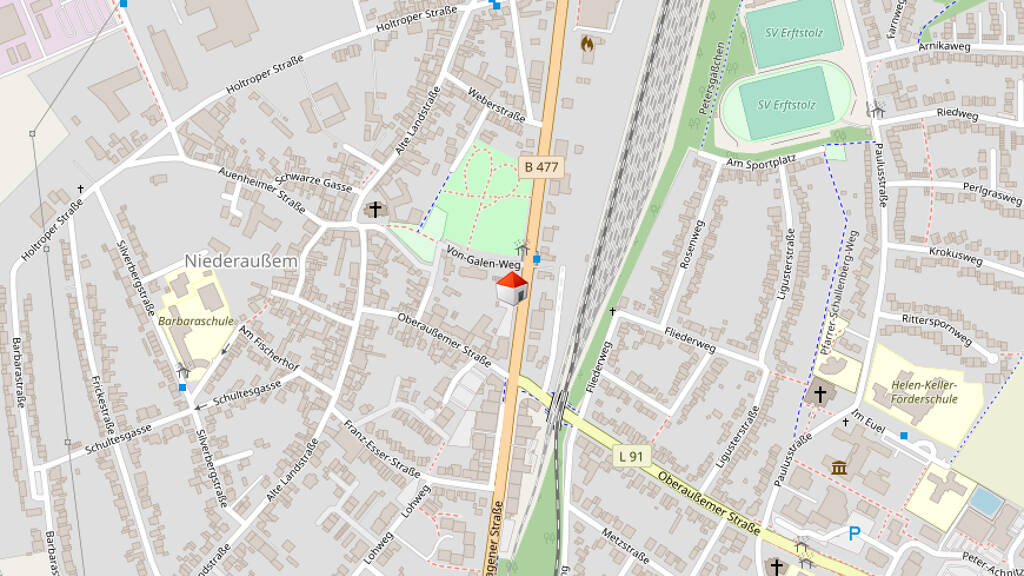 Die Immobilie befindet sich in einer zentralen, stark frequentierten Lage im Stadtteil Niederaußem - eingebettet in ein gewachsenes Wohnumfeld mit direkter Nahversorgung und sehr guter Erreichbarkeit. Parkmöglichkeiten befinden sich direkt auf dem Grundstück, sodass Kundschaft und Lieferanten komfortabel anfahren können.