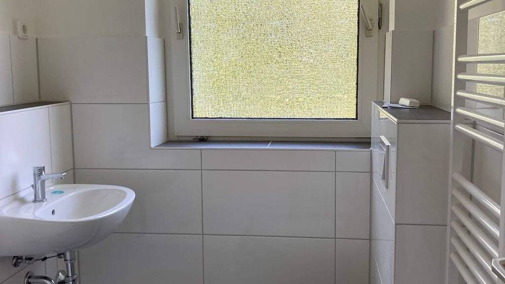 - modernisiertes Tageslichtbad mit Wanne -Durchlauferhitzer -Waschmaschinenstellplatz in der Küche sowie im Keller - alle Wände sind weiß gestrichen - in allen Wohnräumen ist Laminat verlegt - in der Küche ist PVC verlegt - E-Herd Anschluss