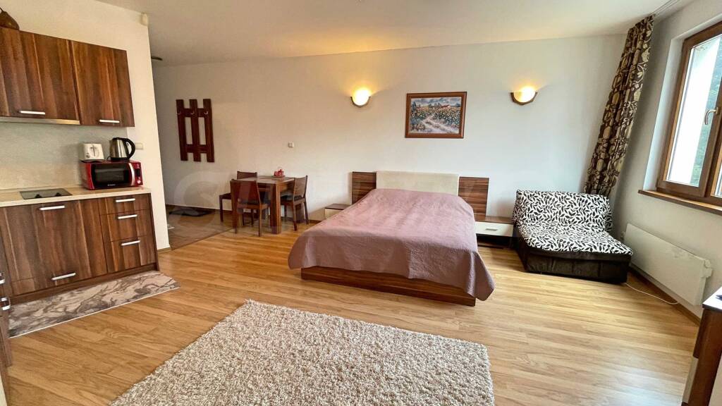 Wir präsentieren ein möbliertes Studio mit einer großartigen Lage im Komplex "Rila Park" - 100 Meter vom Skigebiet "Yastrebets" im Ferienort Borovets entfernt.