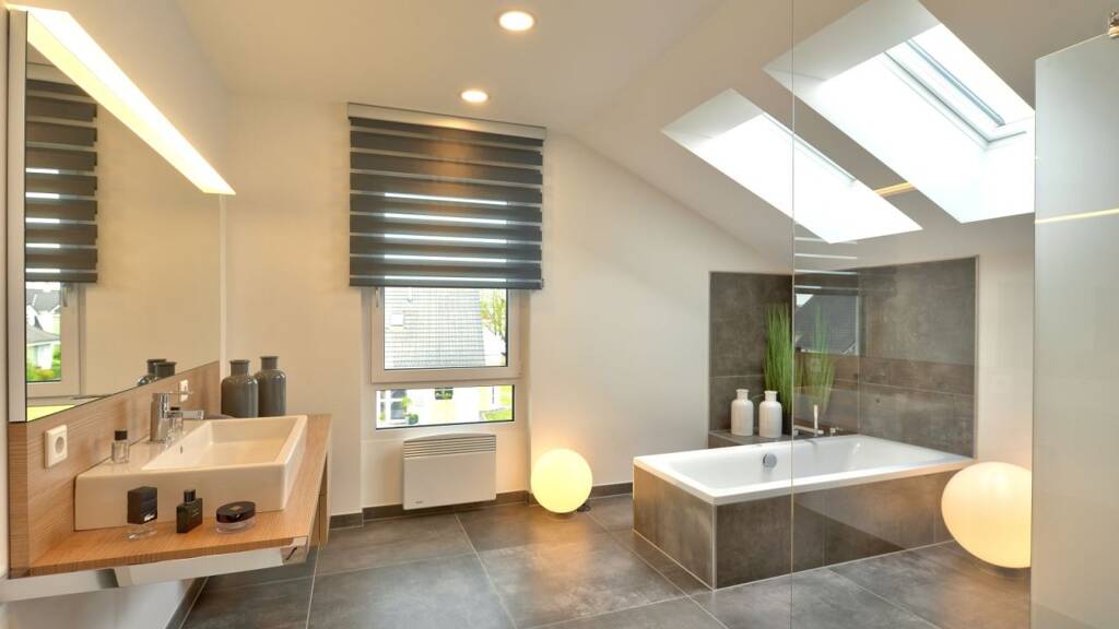 + die Baugenehmigungsplanung + alle erforderlichen Bauversicherungen + von außen fix und fertig, inkl. hochwertiger Haustür + Fenster mit 3-Scheiben-Isolierverglasung + in der Wand eingebaute Rollläden mit Kurbelantrieb, + verzinkte Dachrinnen und Fallrohren + hochwertige Dacheindeckung mit 30 Jahren Garantie + Außenputz (4mm durch gefärbt) in verschiedenen Farben + Wohlfühl-Klima-Heizung mit Kühlfunktion + Offene, eingestemmte, keilgezinkte Vollholztreppe + Sanitär- und Elektroinstallation betriebsbereit installiert + die Bodenplatte inkl. Baugrunduntersuchung. + inkl. Küche der Firma ,,Nolte"
