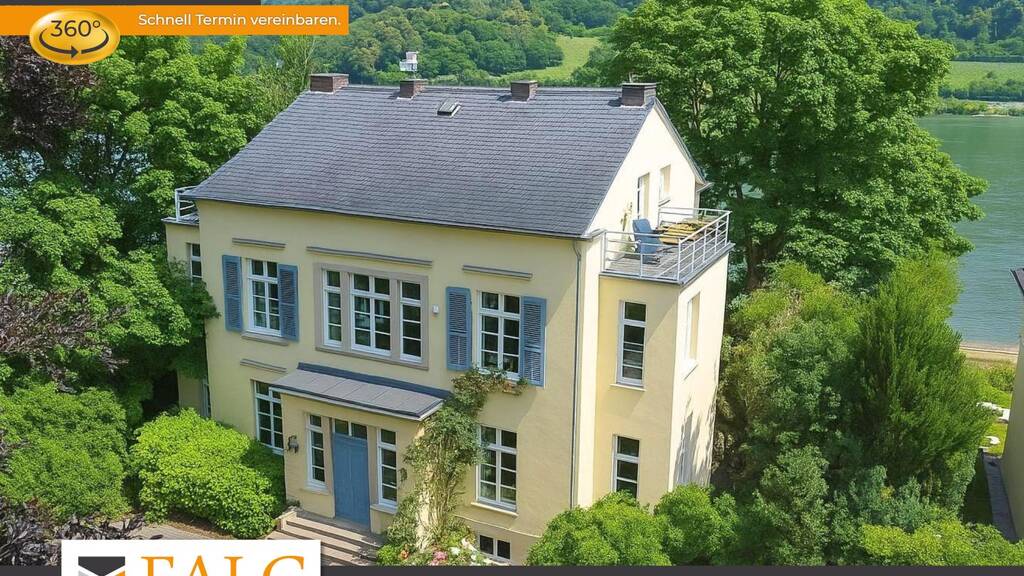 Diese charmante Villa am Rhein wurde im Jahr 1840 auf der anderen Rheinseite in Königswinter im spätklassizistischem Stil erbaut und 1937/38 an die Mehlemer Rheinpromenade transloziert. Es ist das einzige Gebäude am Mittelrhein, bei dem eine solche historisch einzigartige Versetzung (Translozierung) vorgenommen wurde. Auf einem Grundstück von circa 1500 m² erstreckt sich eine Wohnfläche von etwa 360 m², die sich über drei Etagen verteilt und insgesamt zwölf Zimmer sowie zwei Bäder und ein Gäste-WC umfasst.