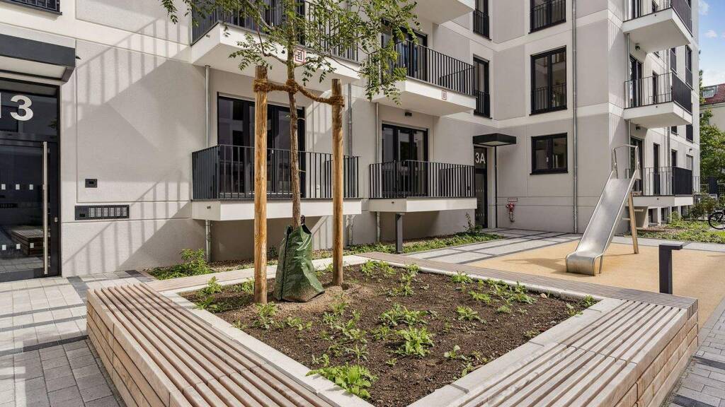 Mit dem FRIEDAS Berlin entsteht auf einem Areal von ca. 24.366 m2 ein modernes Wohnquartier. Der gesamte Neubau-Komplex in der Friedenauer Höhe umfasst sechs Gebäude mit insgesamt 396 Wohnungen, die in drei Bauabschnitten fertiggestellt werden. Im ersten Bauabschnitt entstehen 132 Wohnungen mit einem bis vier Zimmern, teilweise barrierefrei, sowie 69 TG-Stellplätze. Neben der Tiefgarage befinden sich im Untergeschoss auch Abstell-, Fahrrad-, Technik- und Müllräume sowie die Mieterkeller. Die moderne Architektur, bodentiefe Fenster und eine harmonische Farbgestaltung der Fassaden überzeugen ebenso wie die abwechslungsreich begrünten Außenanlagen. In Massivbaubauweise errichtet und erbaut gemäß den aktuell gültigen Bestimmungen der EnEV, erfüllen sämtliche Gebäude die Standards des GEG und "Effizienzhaus 55 EE" sowie die Vorschriften des erhöhten Schallschutzes. Die Wärme- und Warmwasserversorgung sichert ein Blockheizkraftwerk. Die gärtnerische Gestaltung der Freiflächen umfasst Rasen und Pflanzbeete mit Stauden sowie Hecken, Sträucher und Kleingehölze. Die Abgrenzung der Erdgeschoss-Terrassen erfolgt ebenfalls durch Hecken. Ein Spielbereich für die Kleinsten mit Sandkasten und Spielgeräten wird ergänzt durch ebenerdige Spielflächen für Schach, Mühle oder Mensch-ärgere-dich-nicht.