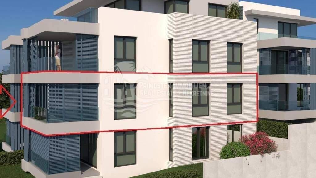 Primosten Immobilien bietet ihnen ein Bauprojekt der Extraklasse an. Die im Bau befindliche Wohnung im ersten Stockwerk ist in einen Gebäude mit insgesamt zwölf Wohneinheiten und nur 100 m von den berühmten Badestrand von Primosten entfernt. Somit in absoluter Toplage. Die Wohnfläche dieser modernen und hochwertigen Wohnung beträgt 87,30 m² und bietet eine Wohnküche, Flur, zwei Schlafzimmer, zwei Badezimmer und eine 14,30 m² überdachten Balkon mit unverbaubaren Meerblick.. Man kann nicht genug hervorheben, das die Lage und der Meerblick eine absolute Rarität ist. Die technische Ausstattung beinhaltet Fussbodenheizung in den Bädern, elektrische Jalousien, Klimaanlage. Desweiteren verfügt das Gebäude über ein Aufzug und ist somit auch für Rollstuhlfahrer geeignet, Im Kaufpreis inklusive ist ein Freistellplatz und ein Gemeinschaftspool. Die Fertigstellung der Bauarbeiten sind für Ende 2026 vorgesehen. Für detailierte Informationen stehen wir ihnen jederzeit zur Verfügung.
